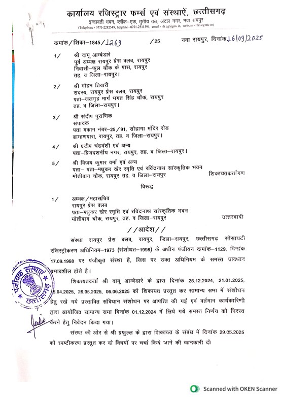 प्रेस क्लब रायपुर: 60 दिन में चुनाव का आदेश।